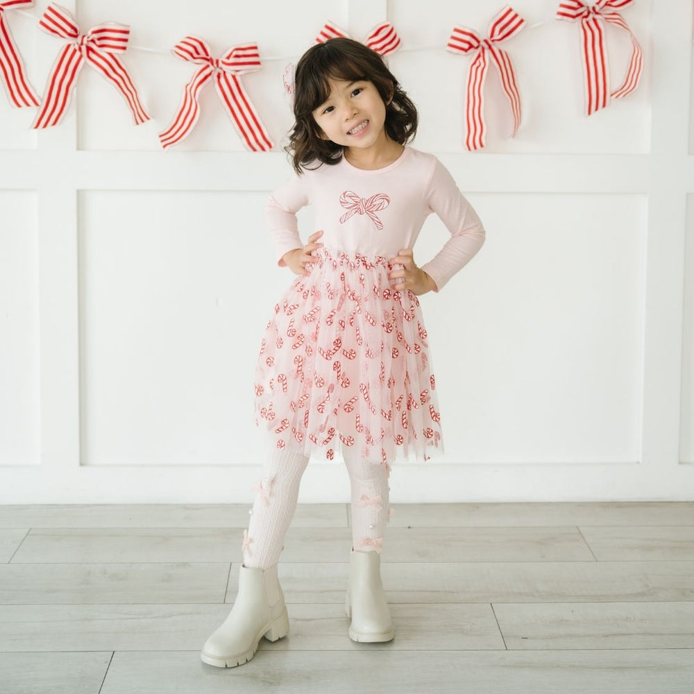 Candy Cane Confetti Christmas Long Sleeve Tutu Dress