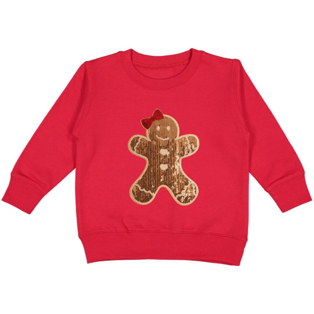 Gingerbread Sequin Patch Christmas Sweatshirt - Red
