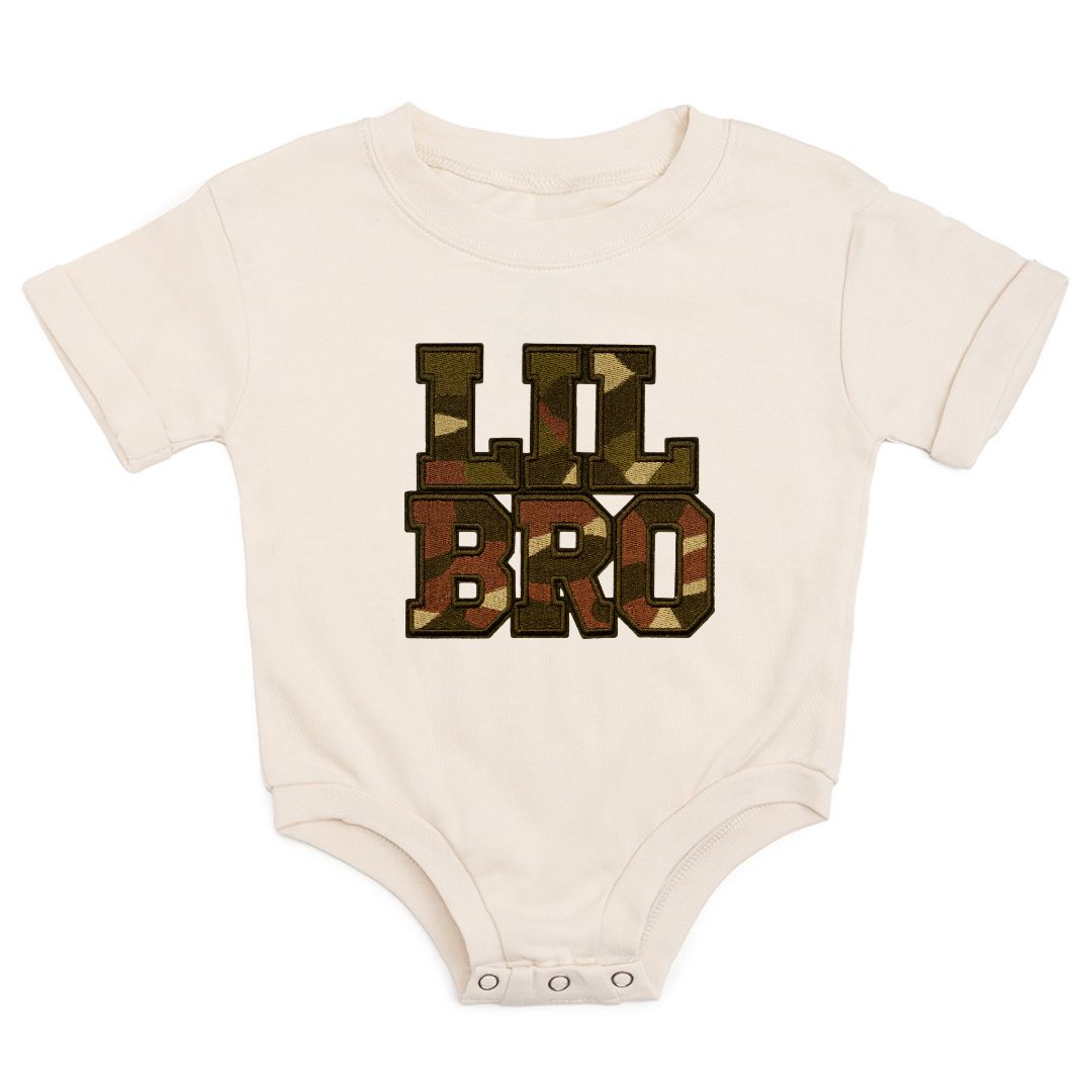 Lil Bro Camo Patch Long Sleeve Romper - Natural