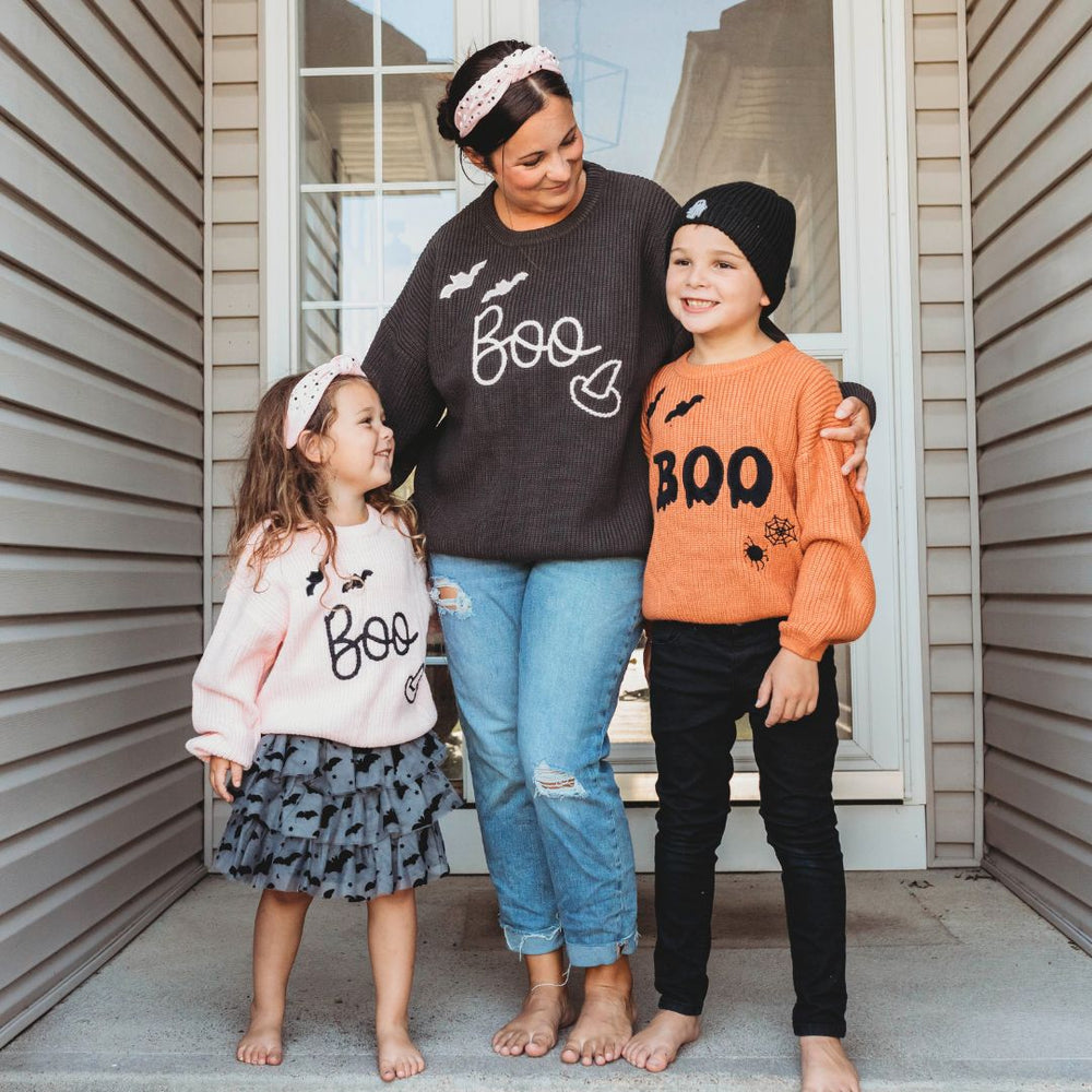 - Pink ribbed knit fabric with black and silver rhinestones and ghost embellishments