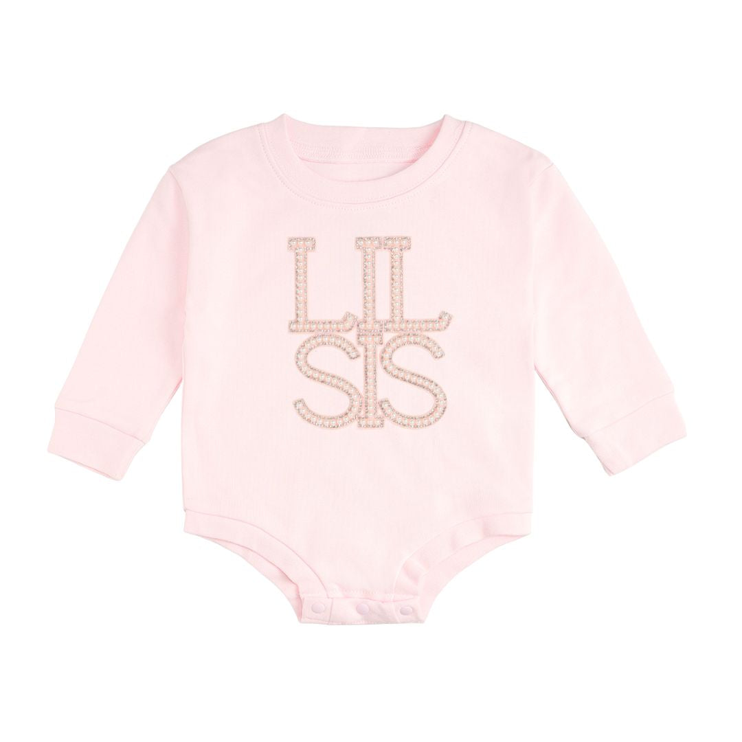 Lil Sis Pearl Patch Long Sleeve Romper - Ballet